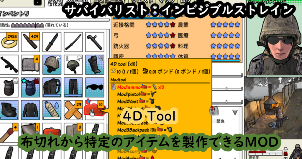 おすすめMOD紹介【サバイバリスト:インビジブルストレイン】布切れから特定のアイテムを製作できるMOD「4D Tool」