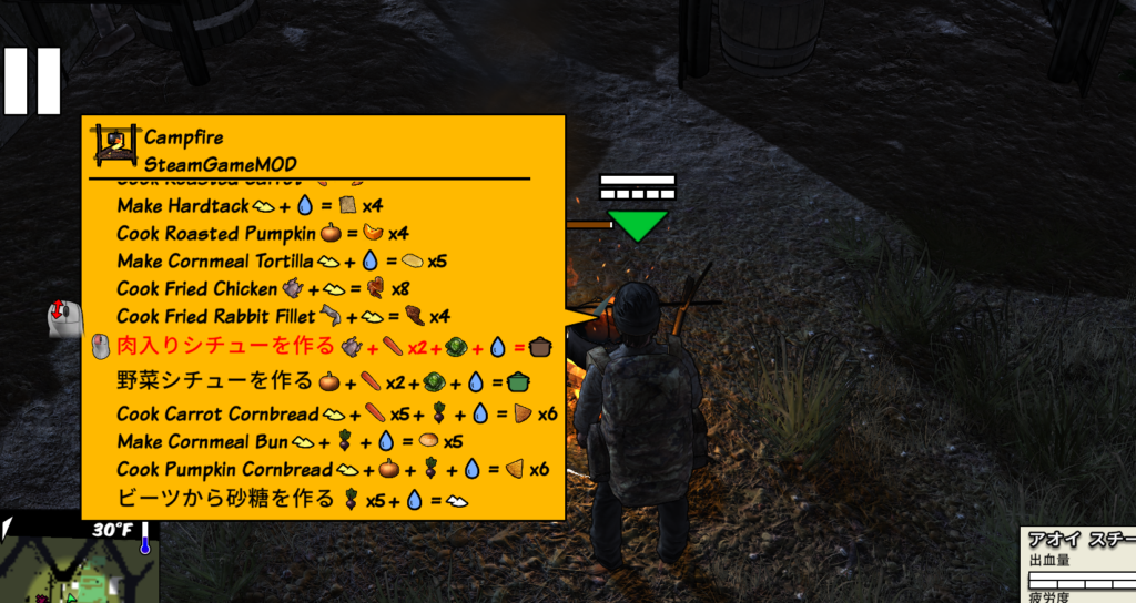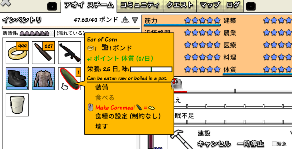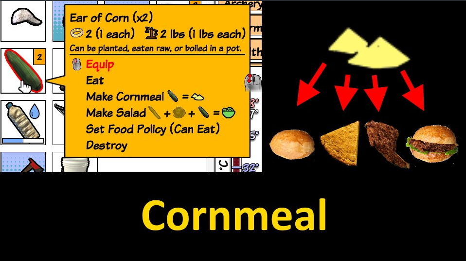 - Make Hardtack:乾パン ⇒ 調理方法:コーンミール+水