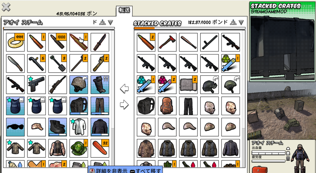 サバイバリスト:インビジブルストレインでは建築物や箱でアイテムを収納することができます。