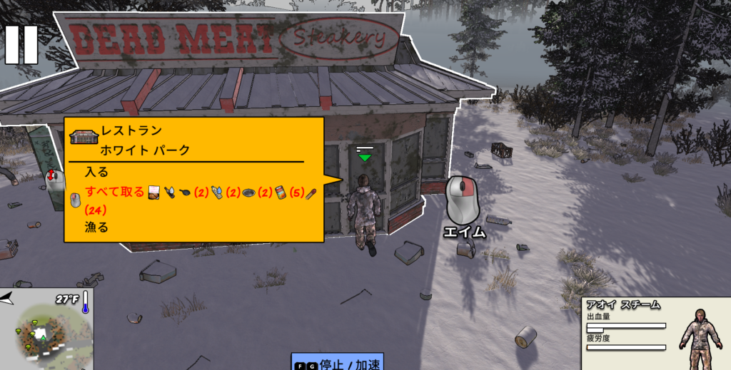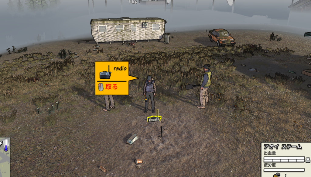 このゲームでは道端でアイテムは落ちておらず、建物や車などからアイテムを採取することが多いです。