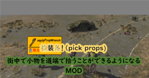 このMODでは道端にアイテムが落ちており、拾うことができるようになります。
