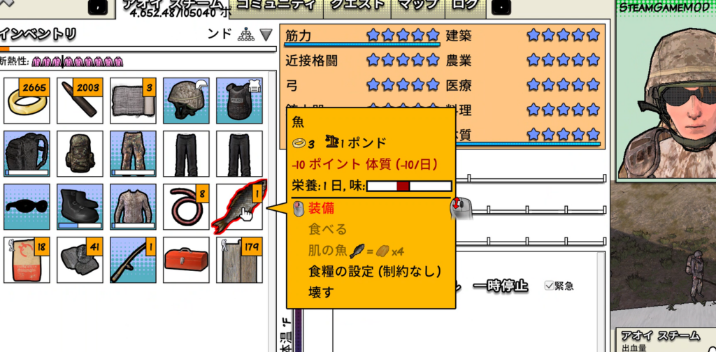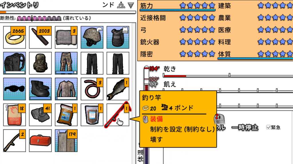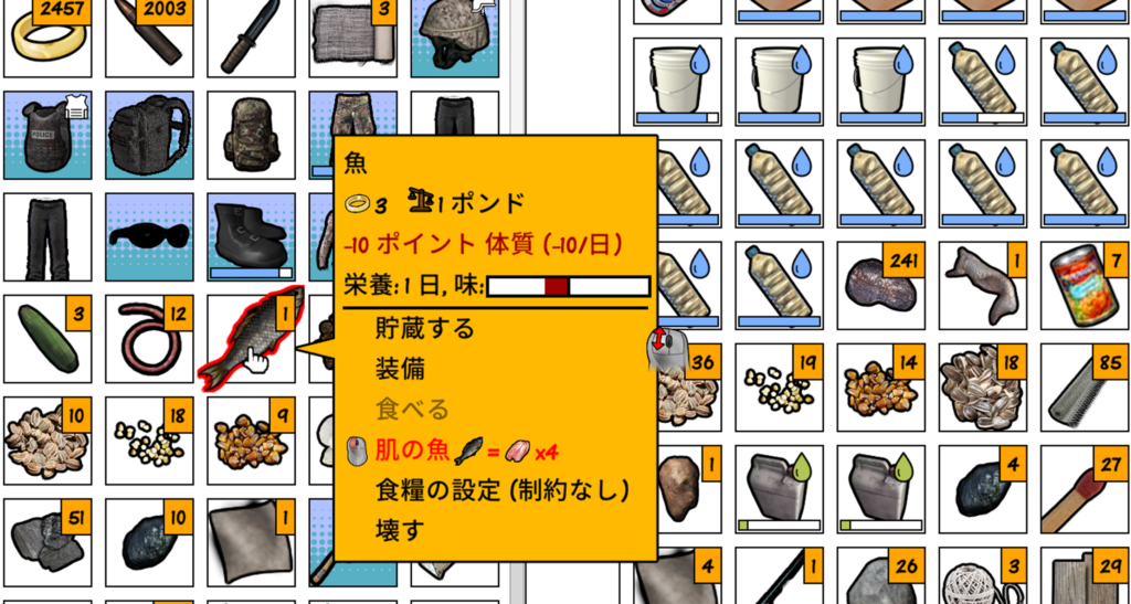 サバイバルの特質上、飢えとの戦いは避けられません。