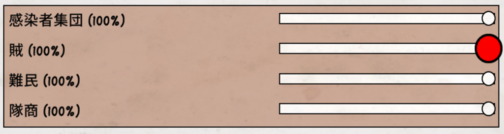ゾンビや賊が増えると難易度が上がりますし、難民が増えるとコミュニティに誘いやすくなります。