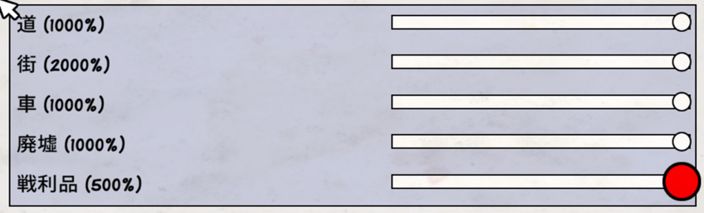 サイズやゾンビの数、街の数などの設定を範囲が広がります。